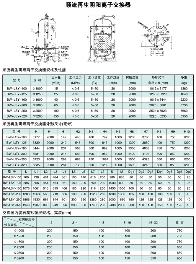 順流再生陰陽離子交換器