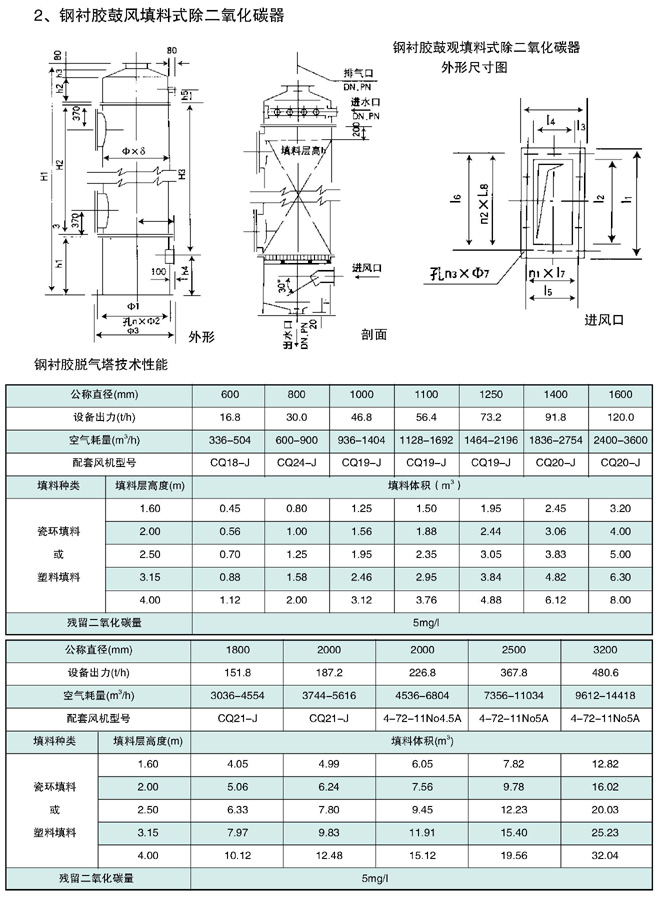 鼓風(fēng)填料式除二氧化碳脫氣塔